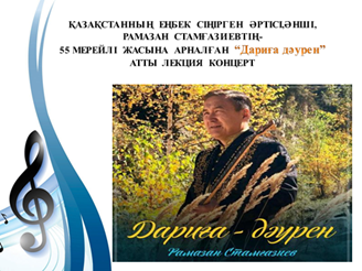 Қазақстанның еңбек сіңірген әртісі , әнші, Рамазан Стамғазиевтің –55 мерейлі жасына арналған «Дариға-дәурен»атты лекция-концерт