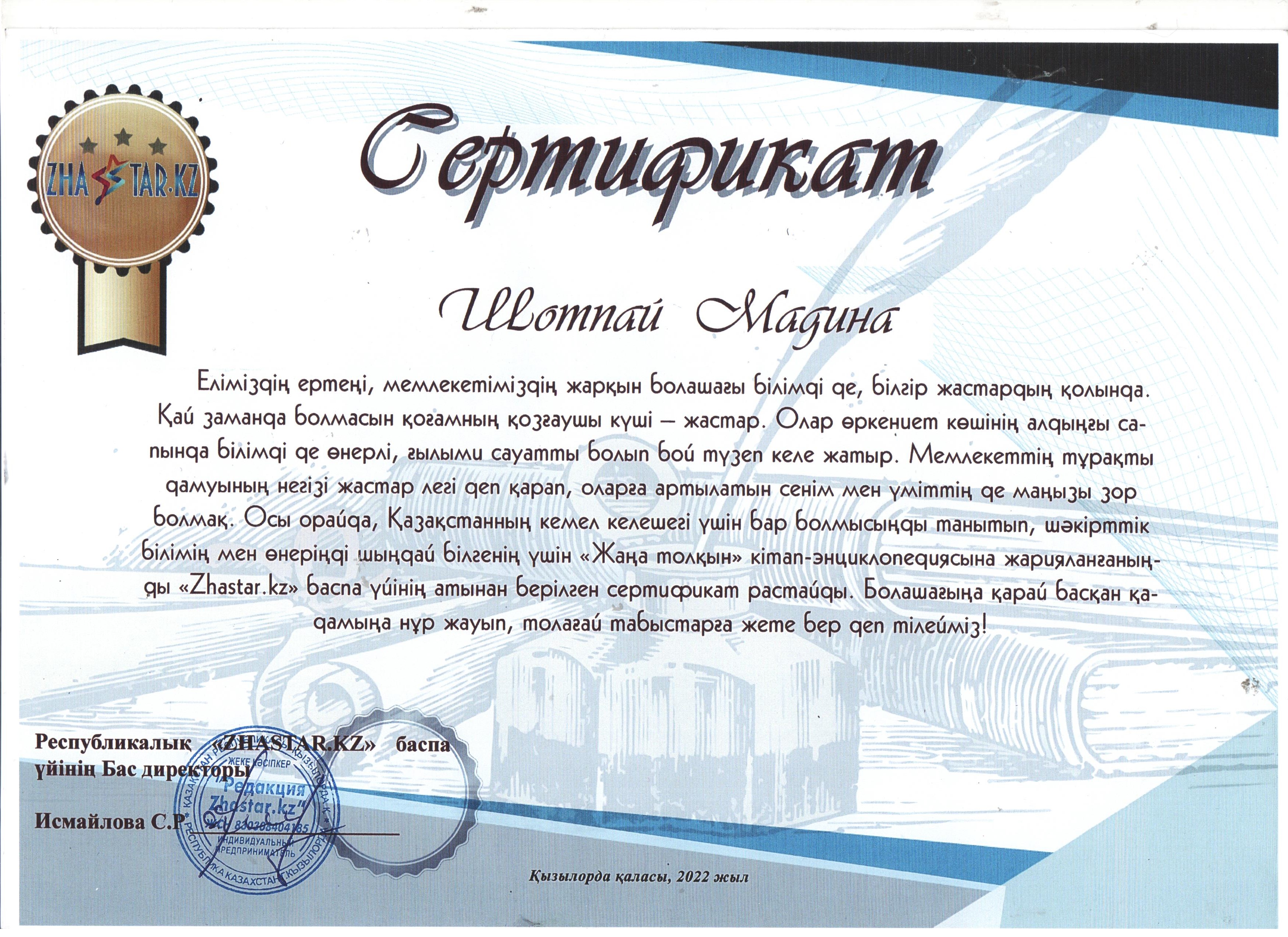 Елдің ертеңіне айналатын талабымен таланты табысқан жас шәкірттерді бұқаралық - ақпарат құралдары беттеріндегі алғашқы баспалдағымен шын жүректен құттықтаймыз!