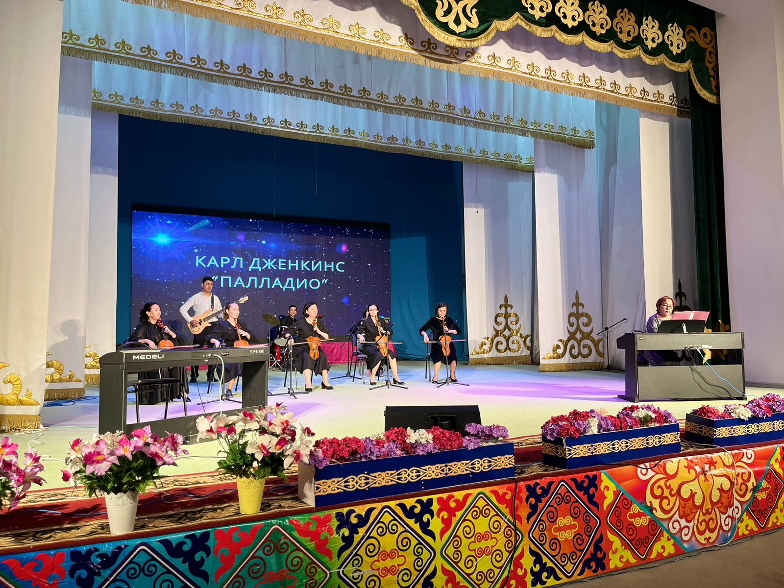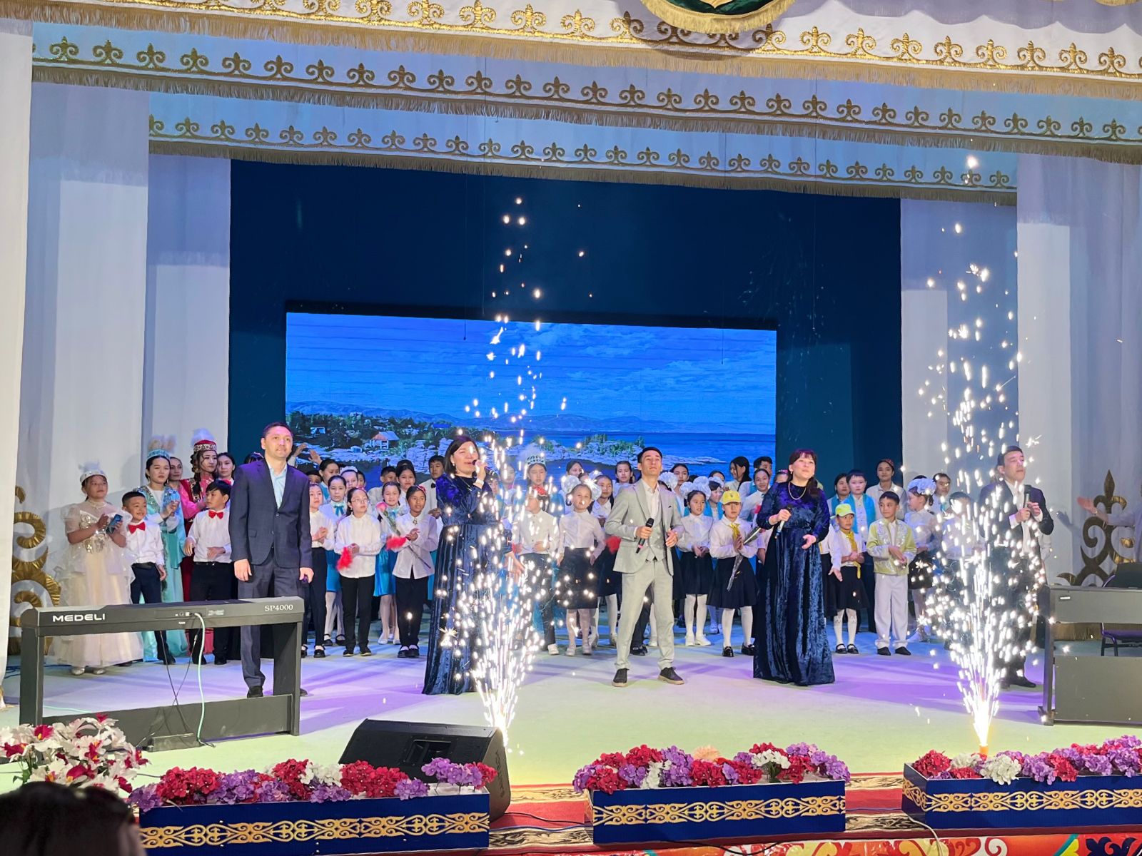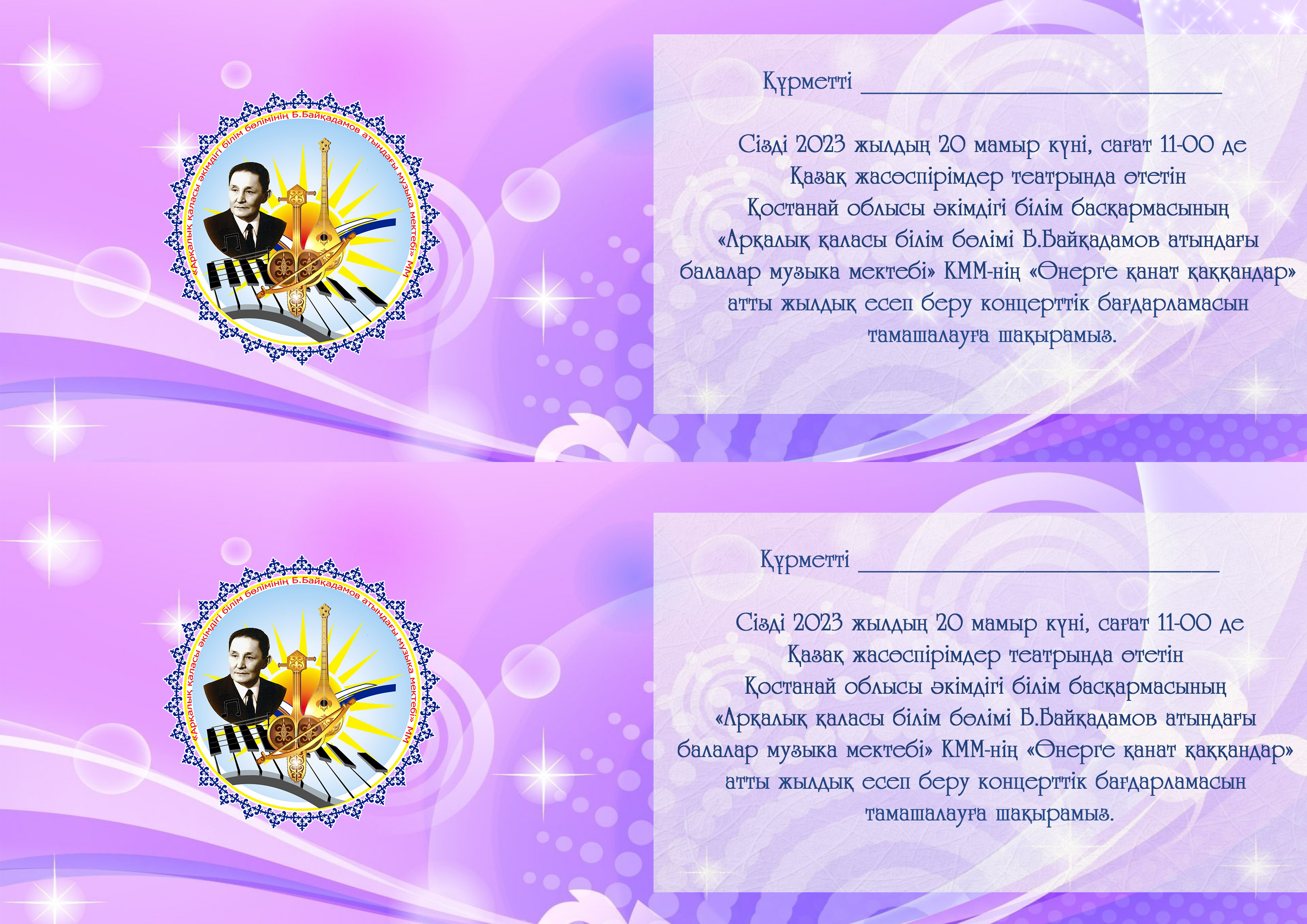 20 мамыр күні Қазақ жасөспірімдер театрында елімізде ЮНЕСКО көлемінде тойланып жатқан күй атасы - Құрманғазының 200 жылдық, ұлт ұстазы Ахмет Байтұрсыновтың 150 жылдық мерейтойға және ата-аналарға арналған облыстық «Үндестік» жобасы аясына орай мектебіміздің «Өнерге қанат қаққандар» атты жылдық есеп беру концерті өткізілді.Игі жақсылардың басын қосқан бұл концерттің алғашқы шымылдығын 80 оқушыдан құралған балалар оркестрі Құрманғазының күйі «Балбырауынды» дирижер Бөлтірікова Жақсыгүл Ибрагимқызының жетекшілігімен орындады. Концертіміз Ақанов Әділ Кәкиұлының жетекшілігімен қазақ композиторларының шығармаларынан құралған "Күй тартысқа" ұласты. Қорытынды бөлім барлық оркестр Н.Тілендиевтің «Әлқисса» күйімен тәмамдалды. Ақын аз Байтұрсынов Ахметтей, Сөзі алтын, мағынасы меруерттей дей келе А.Байтұрсыновтың «Аққұм» әнін вокал класының оқушысы, бірнеше дүркін республикалық, халықаралық байқаулардың жүлдегері Нұржайна Таубалды нақышына келтіре шырқады. Қазақстанда тұңғыш құрылған «Шертер» фольклорлы- этнографиялық ансамбльдің әншілері Сайлаубек Ордабаев пен Отаркүл Мұқатованың немерелері Томирис, Альмира және Нұрғисса Сайлаубектердің орындауында Халық күйі «Қара жорға» орындалса, болашағы көп үміт күттіретін шәкірттеріміз Аяулым, Айдана, Алихан, Адилет Абдибековтер Кармайклдің «Сердце и душа», Айтқали Жайымов «Шалқыма» орындайтын домбыра класының оқушысы, облыстық, республикалық, халықаралық байқаулардың лауреаты Қадыр Нұрәли, концертмейстер Бондаренко Римма. Құрманғазы, Тәттімбет бабамыздың, Дина анамыздың күйлерін санасына сіңірген шәкірттеріміз Ермұрат Үсеновтің «Кербез сұлу» шығармасын оқушылар халық аспаптар ансамблі Балым Жусупованың жетекшілігімен орындап берді. Домбыра, қобыз, сені ойнатамын,Толғау сап, төңіректі ойлатамын дей келе, Мұқан Төлебаевтың «Кестелі орамал» туындысын қобызшылар ансамблі Райхан Хасенова мен концертмейстер Жумаш Молдажанованың жетекшілігімен орындап, көрерменнің ыстық ілтипатына бөленді. Мектебіміздің ең жас күйші қыздарының орындауында халық күйі «Нәр ағашы» Б.Жусуповның жетекшілігімен. Абдулхамит Райымбергеновтың шығармасы «Секіртпе» Әсел Кәрібаеваның жетекшілігімен домбырашылар ансамблі қоңыр домбыраның күмбіріне бөледі. Көптің көңілінен шыққан концертіміз орындайтын шәкіртіміз Назым Алтынбаеваның орындауында, Жумаш Молдажанованың күйсандықта сүйемелдеуімен халық әні «Дайдидаумен» жалғасты. Дәстүрлі ән класынан құралған дуэт халық әні «Үш меркі» әнін тарту етті. Роза Газизованың жетекшілігімен аккордеоншыларымыз да қалыс қалмай, Шуберттің «Экосез» туындысын орындап берді.Вокалдық ансамбль жетекшісі Гүлнұр Баяхметованың орындауында ешқашан ескірмейтін «Қазақ әндерінен попурри» орындалды. Марат Бердіғұловтың «Ақсауыт» шығармасы жетекшісі Ә.Ақановтың «Арқа сазы» ұлт аспаптар ансамблінің орындауында көпшіліктің құрметіне бөленді. Шәмші Қалдаяқовтың «Теріскей» әнін О.Қапан нақышына келтіре шырқады.Денеңді шымырлатып, толқытатын, Мәңгілік басымды ием, өнерге мен демекші, Т.Мұханбетжанов «Детство» шығармасы С.Шайхин жетекшілік ететін БЭНД Байқадамов. Карл Дженкинс "Палладио" орындайтын ансамбль жетекшісі Райхан Хасенова. «Я люблю кофе» орындайтын бірінші сынып оқушылары, жетекшісі Молдажанова Жумаш. Алтынайдың күйі «Ақжелең» орындайты